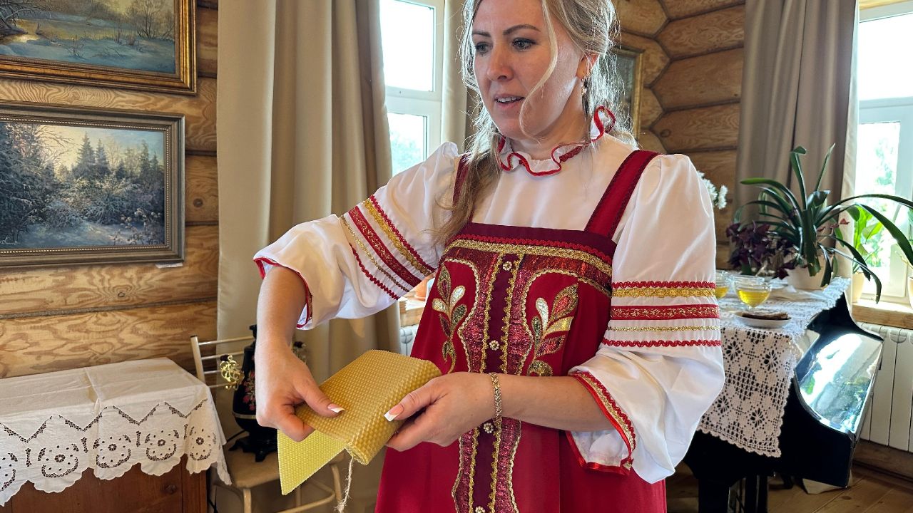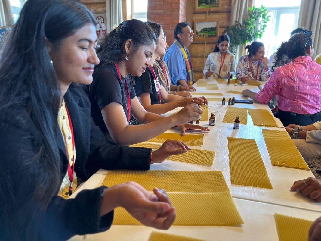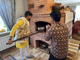 Индийцев встречали караваем, угощали чаем с блинами и медом, провели для них мастер -класс "Волшебная магия свечи", познакомили с русской печью в деле. Затем после фотосессии отправились на музейное подворье- восторгу гостей не было предела.